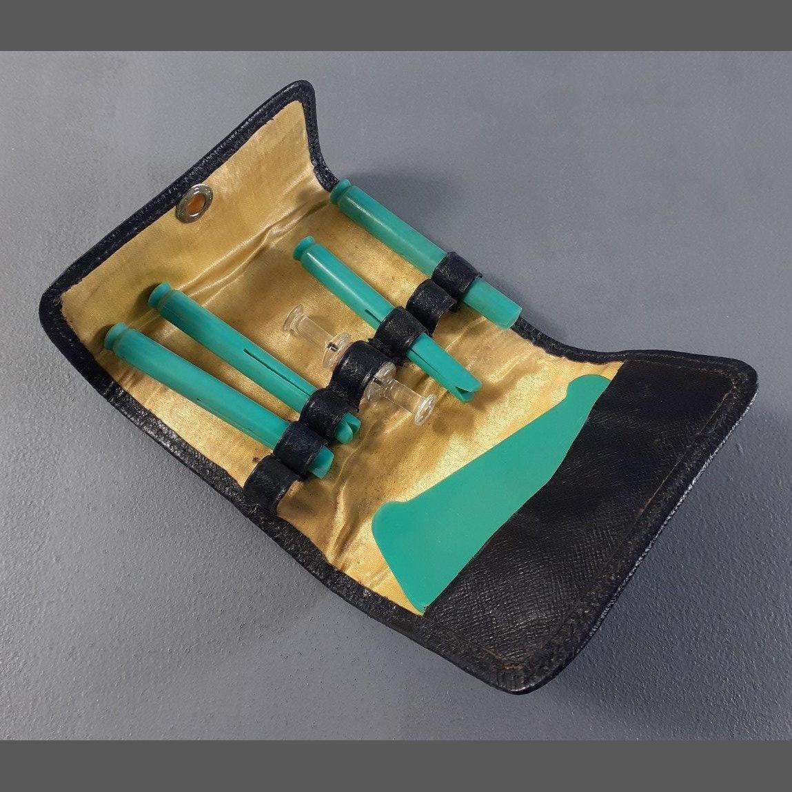 Small vintage blue travel clothes peg set (part set) in Cleghorn of Edinburgh small case. Unusual little item.