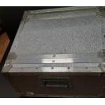 A SUBSTANTIAL ALUMINIUM carry-storage case - depth 50cm x height 50cm x 25cm depth approx