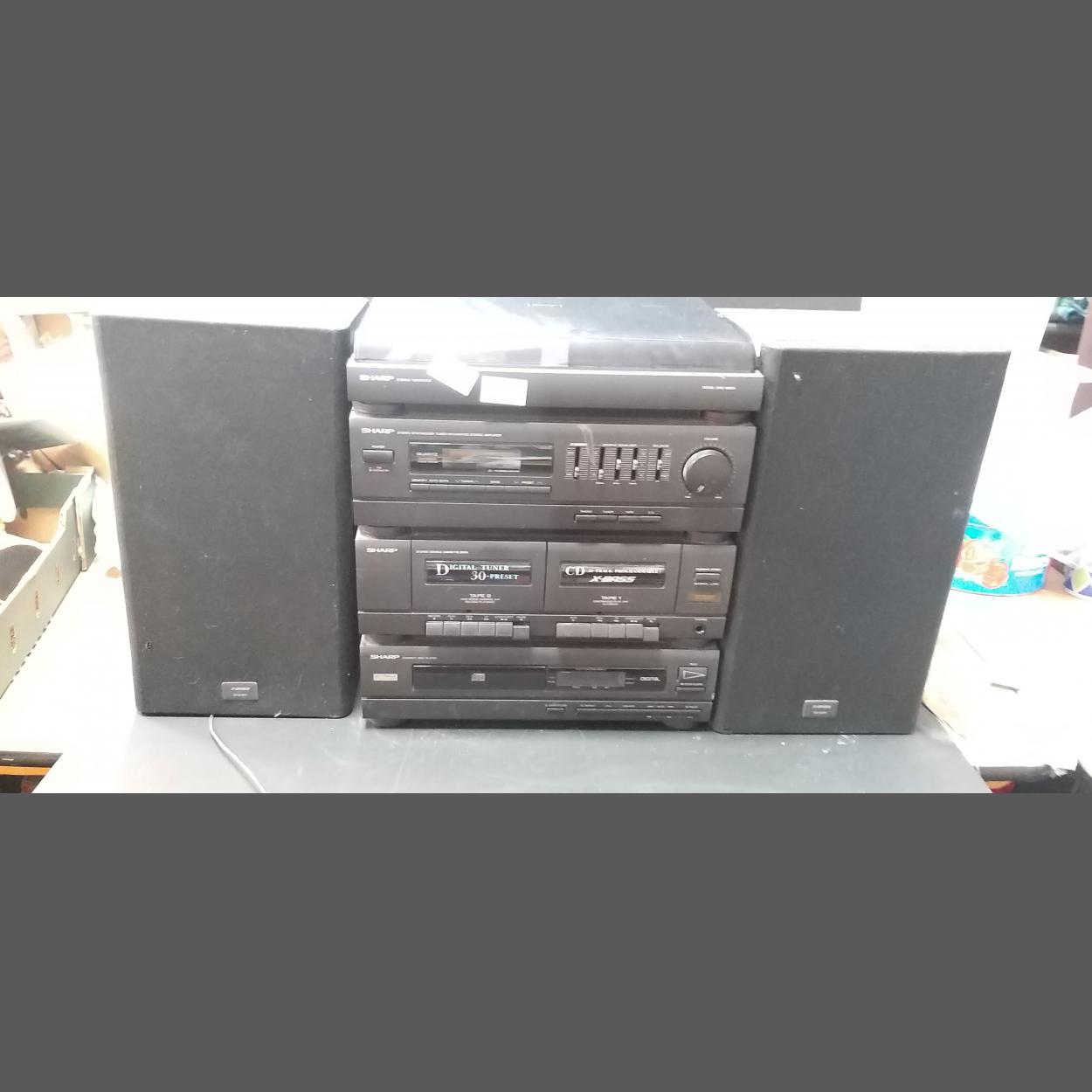 SHARP CMS 150 CDE STACKING SYSTEM electric music system with turntable - double tape deck - CD Player - tuner radio