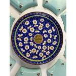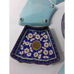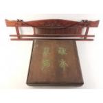 A boxed Chinese enamel condiment tray within a wooden box 38 38cm approx. and also from Laos a decorative loom hanging piece (80cm long approx)
