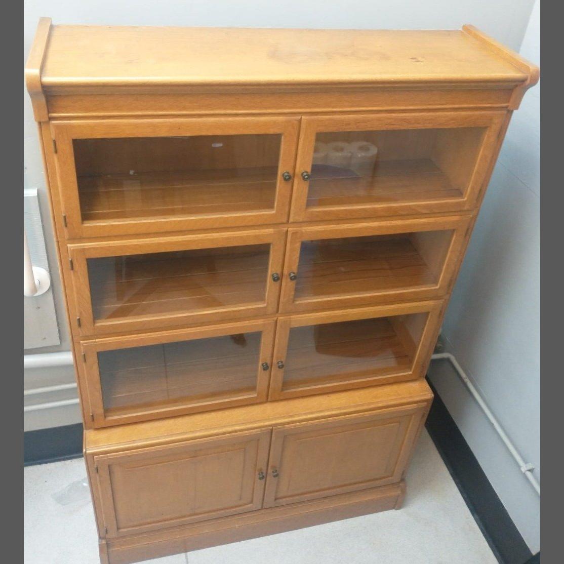 c 1950's - A lawyer's solid oak legal document bookcase with two cupboard doors and six hinged glazed doors - dimensions 140cm height x 90cm width x 26cm depth approx -