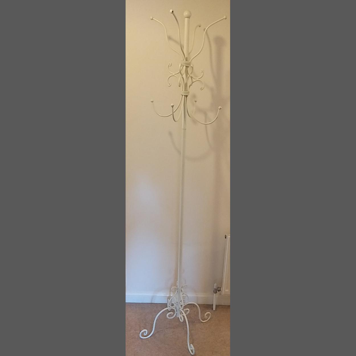 A wrought iron effect coat stand with a cream colour finish - 6ft in height approx