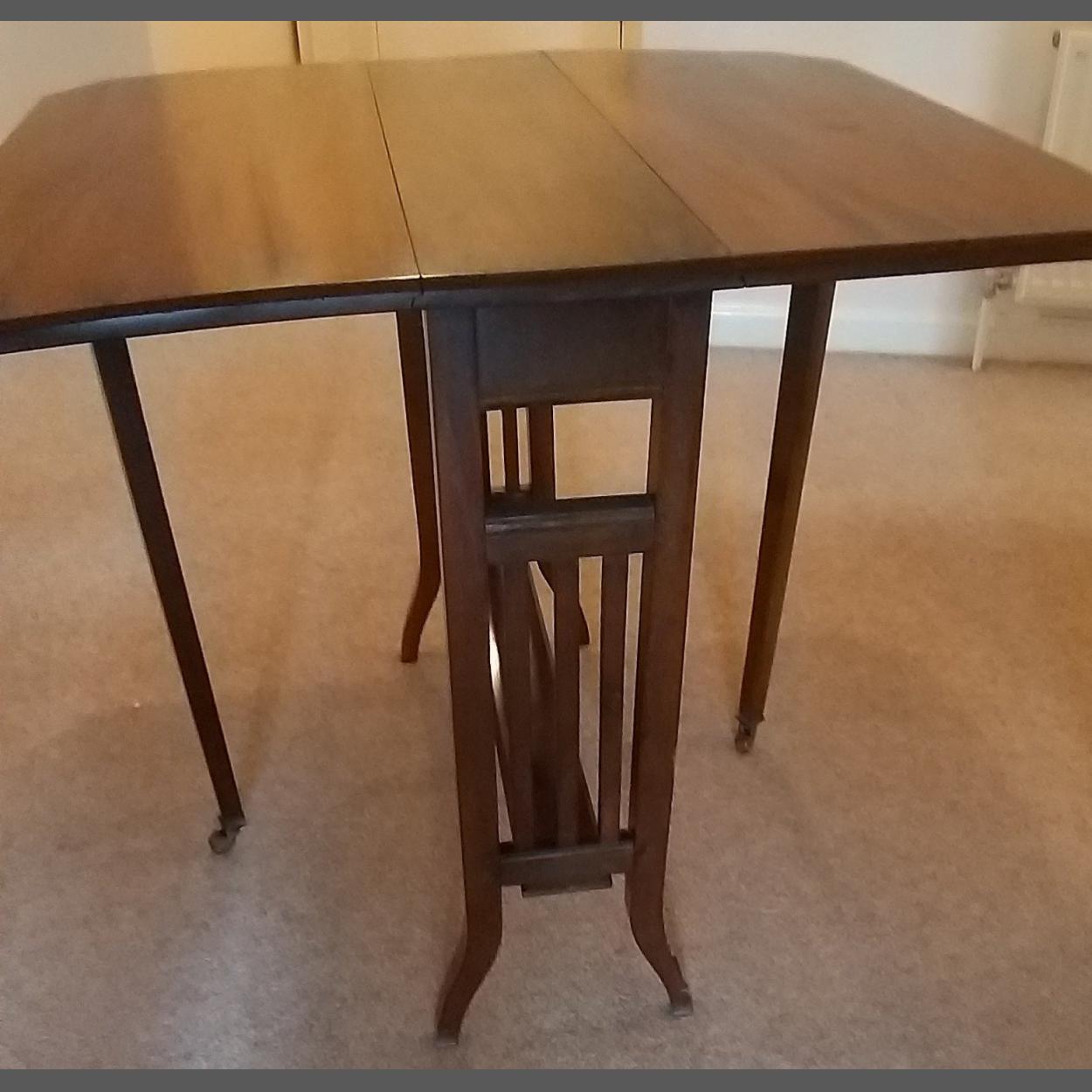 An cEDWARDIAN mahogany gate-leg table with both castors intact - in lovely condition! 3ft width when extended x 2ft depth approx - folds down neatly when not in use