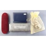 Pearls and beads. One set of pearls with silver stamped clasp (A/F)