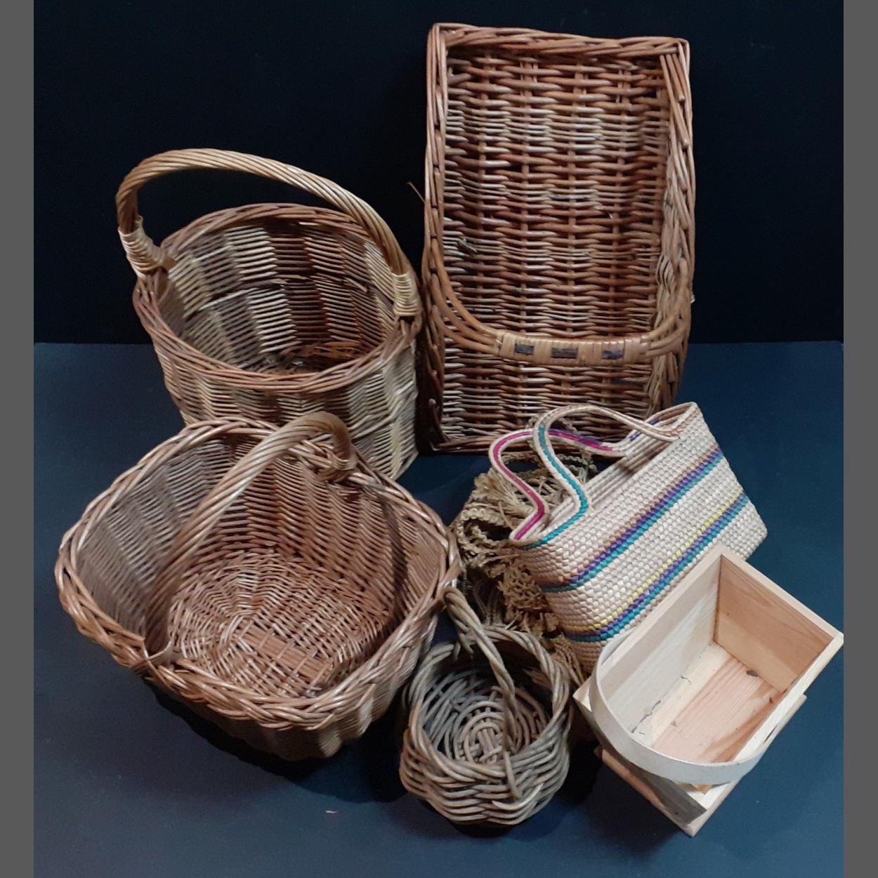 Collection of basketware to include flower trug, shopping baskets etc