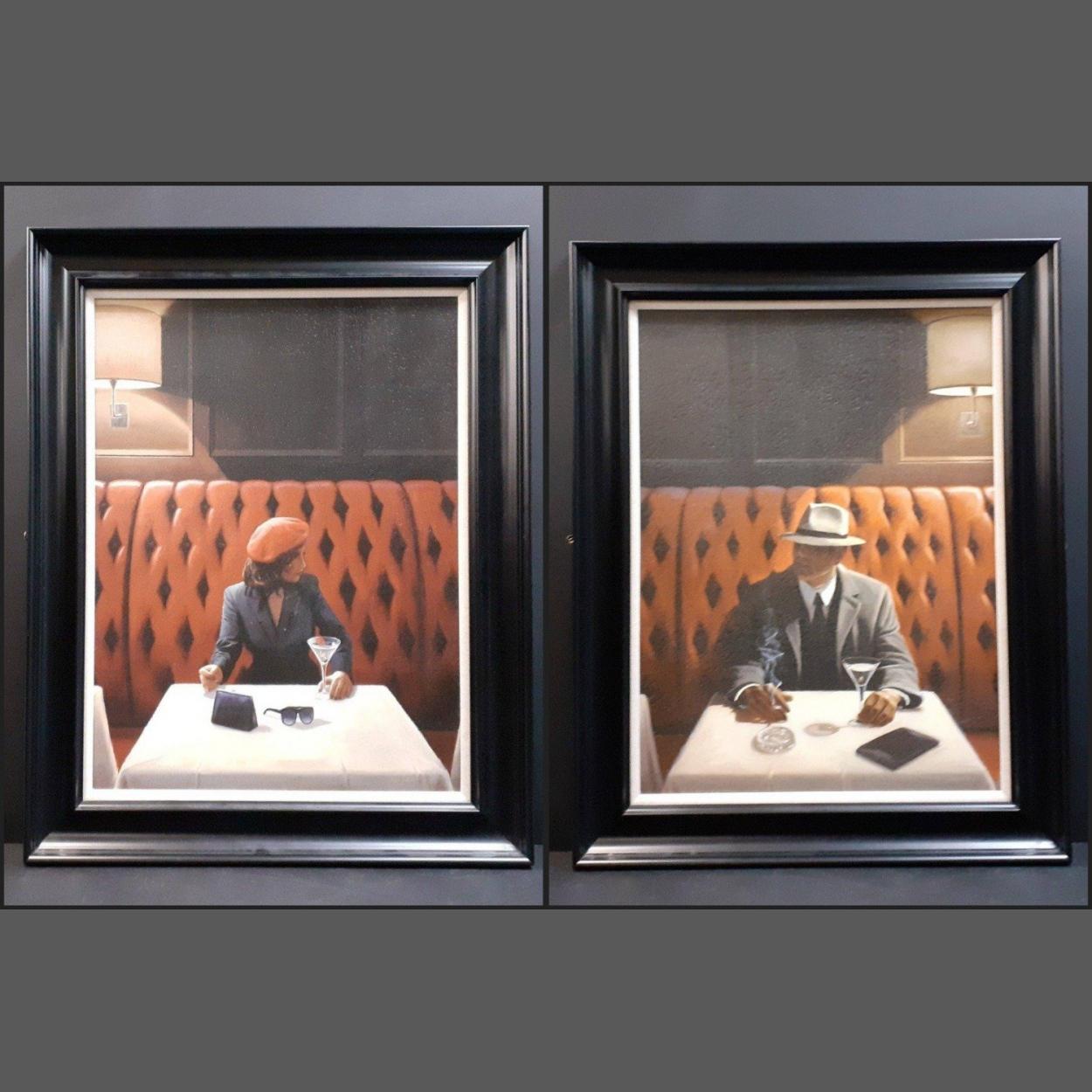 MYLES SULLIVAN A CHANCE ENCOUNTER both Man & Woman. Large framed prints. 99cm x 80cm approx. Stylish and on trend prints, a lovely pair well framed and in good condition.