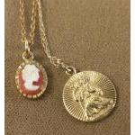 Two pendants and chains, St Christopher charm and cameo both stamped 9ct. Gross weight 3.9g approx