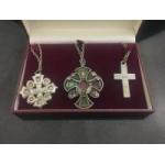 Three SCOTTISH HARDSTONE pendants on chains, largest 6cm approx