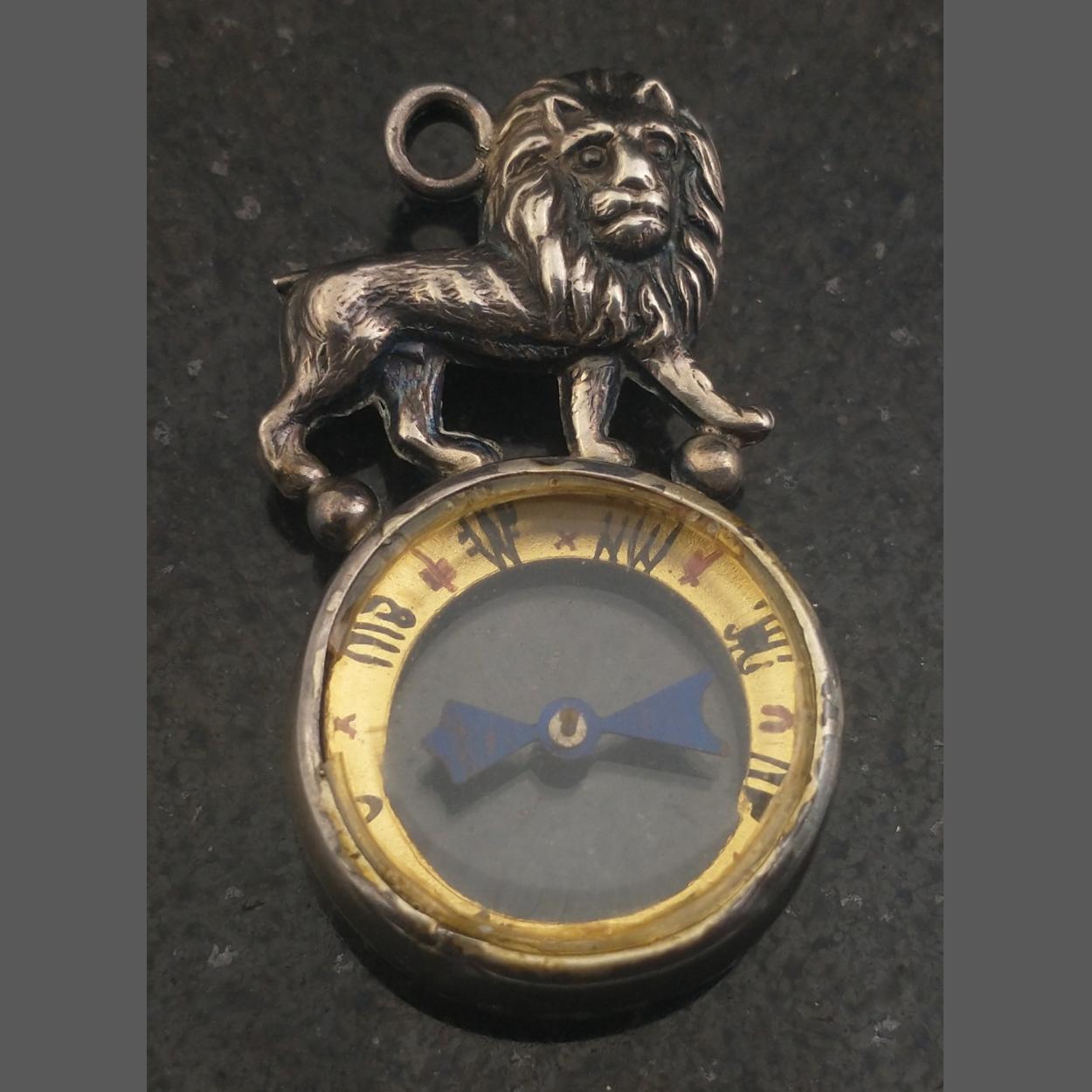 A Chester hallmarked pendant being a compass surmounted by a lion 35mm