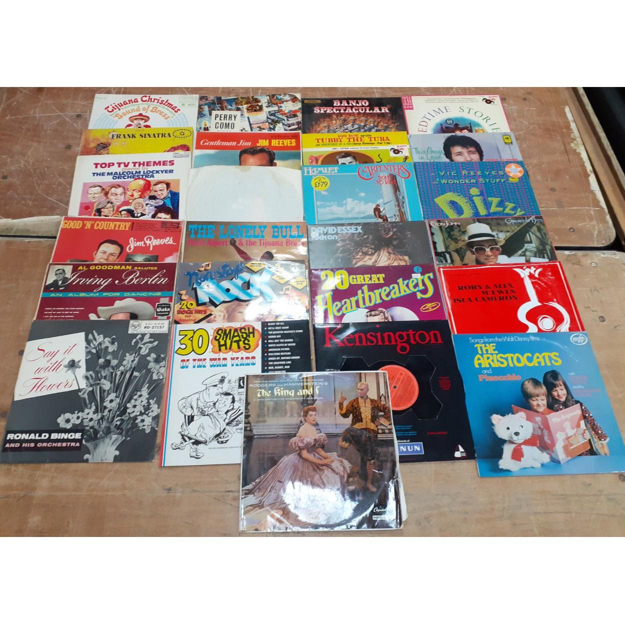 A collection of 33rpm vinyl records mainly from the 70s to include HERB ALPERT, ELTON JOHN, DAVID ESSEX, Tubby the Tuba, FRANK SINATRA, Banjo Spectacular, Tijuana Christmas, PERRY COMO, various compilation albums. All in played condition.