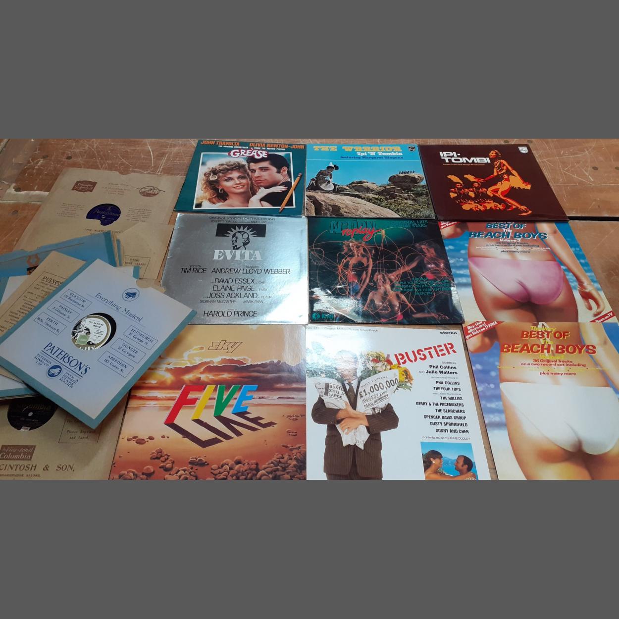 A quantity of 9 well-stored LPs to include Ipi-Tombi, Evita, Grease, etc and a selection of shellac 78s