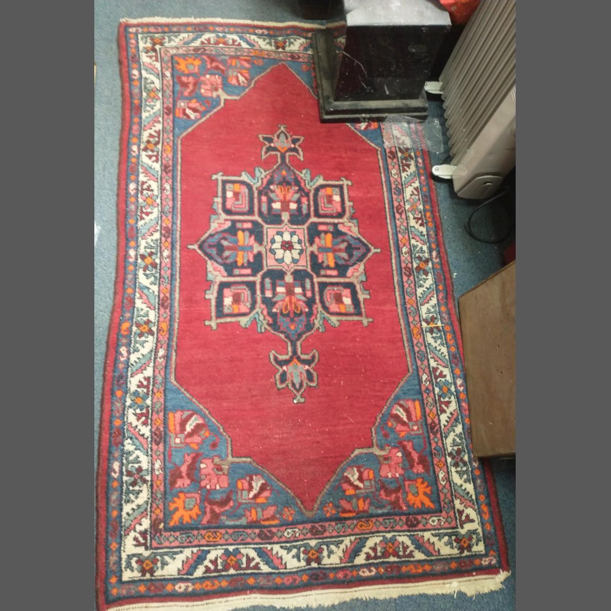 A vibrant impressive Persian hand knotted carpet. Size 175cm x 100cm approx. Overall good condition.