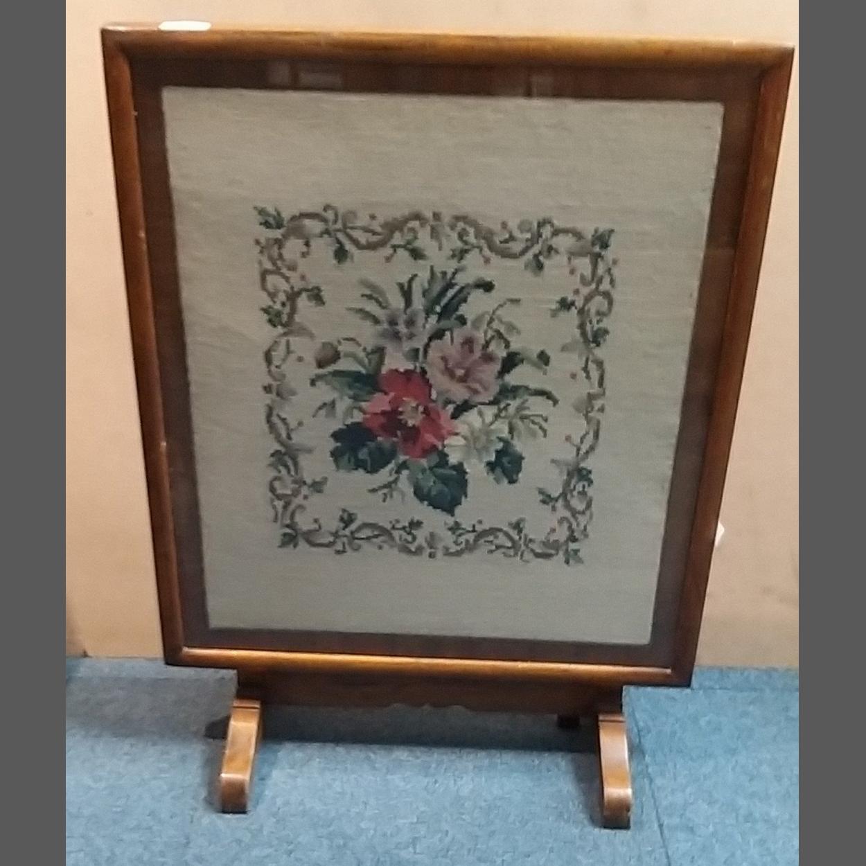 A vintage swing top folding table with embroidered glass top. 45cm tall approx when opened.
