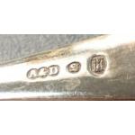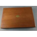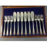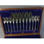 Antique cutlery canteen box with complete plated monogrammed knife and fork set. In good condition.