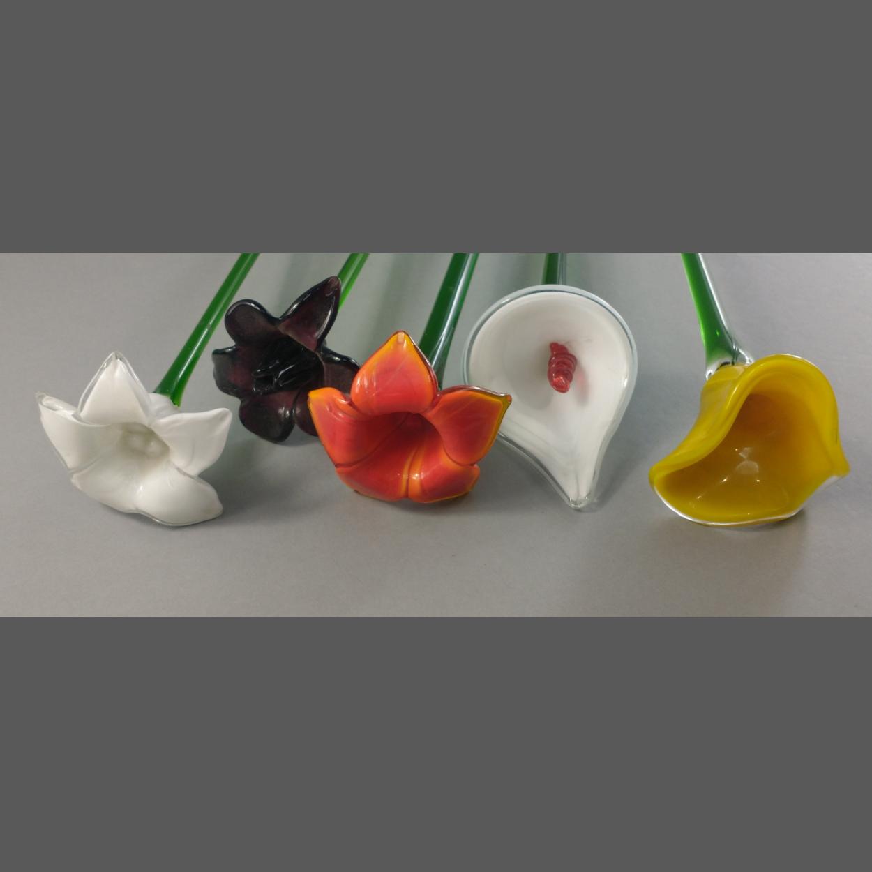 Five beautiful MURANO glass flowers each approx 50cm tall. No damage
