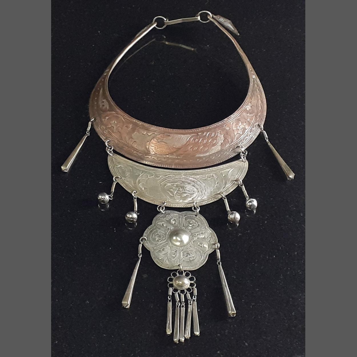 Vintage & Decorative MIAO Chinese tribal Torque necklace. Nicely inscribed with birds and fauna.