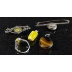 A collection of Scottish hardstone jewellery. A silver hallmarked pin and brooch and others. In a Oban box.