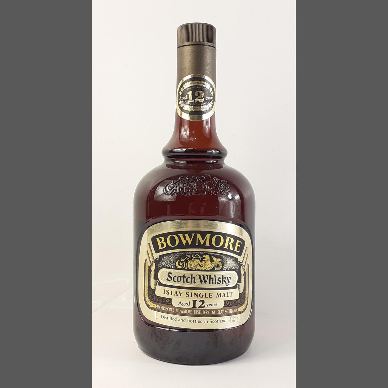 Scarce BOWMORE 12 years single Malt in 1980s 1L dumpy style bottle. Sealed.