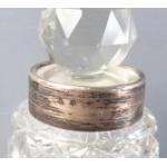 A silver collared scent bottle with stopper. Indistinct hallmarks. Stands 11cm approx. Stopper has minor chips.