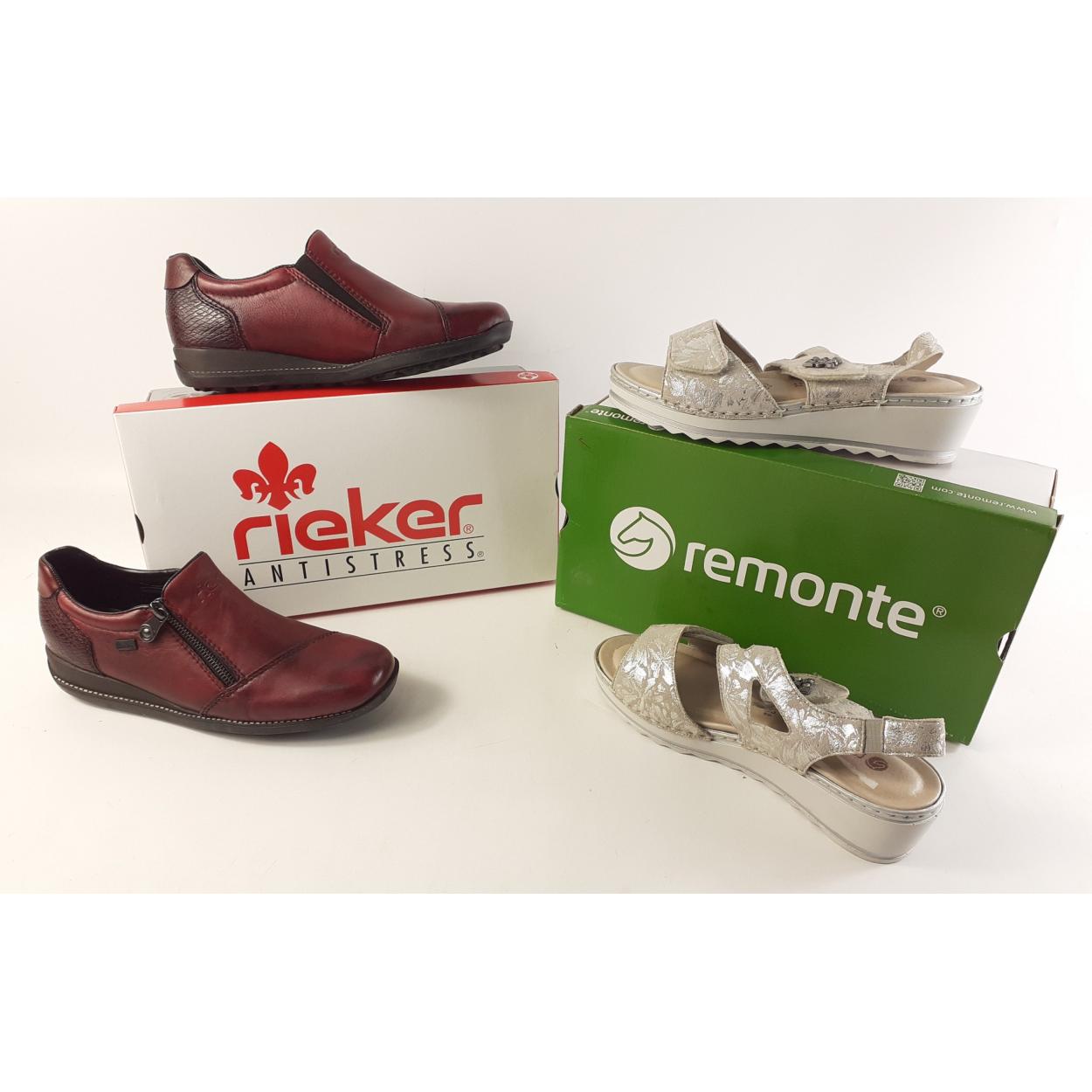 A new pair of RIEKER shoes with zip fastener, size 5D, plus a pair of REMOTE silver sandals size 38, unworn (£85.00 new)