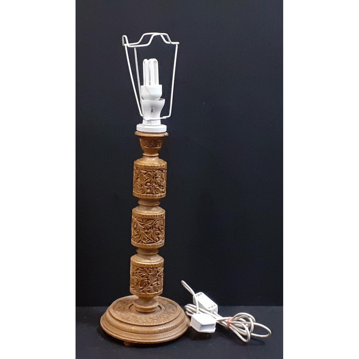 A carved wooden FAR EASTERN table lamp standing 45cm tall approx