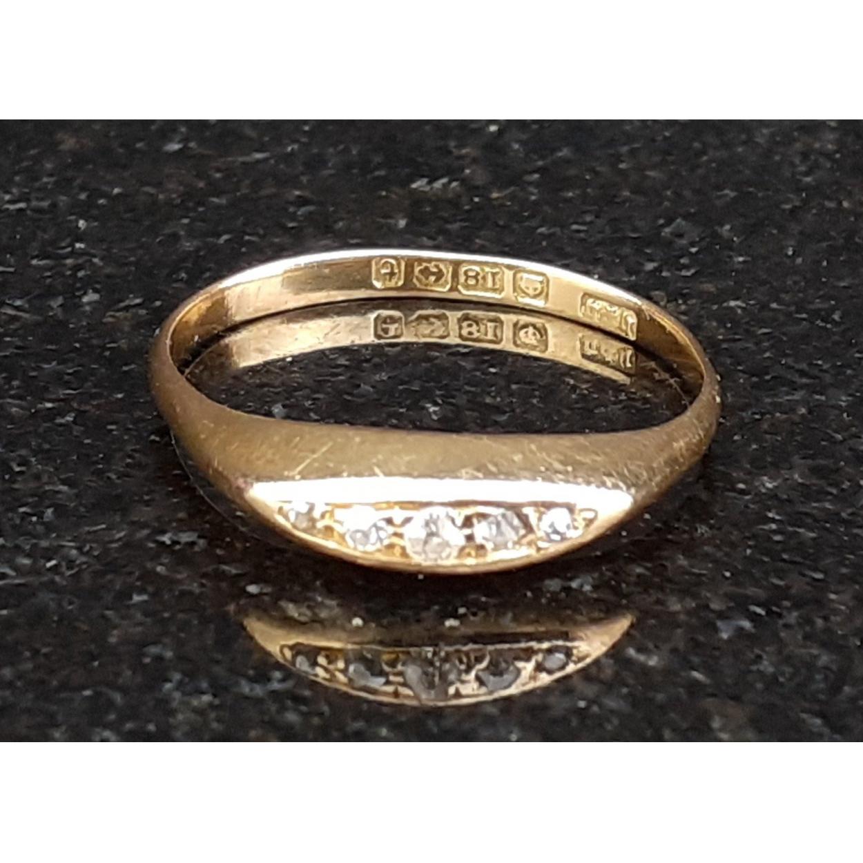 A fully hallmarked 18ct ring set with 4 diamonds (tested). Size O, gross weight 2.50g approx