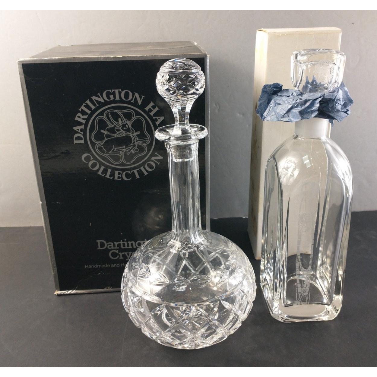 Two boxed decanters one by DARTINGTON CRYSTAL (30cm high) and the other by LINDA WHITE & ANDY SHARP of Dundee engraved with a Rennie Mackintosh style design.