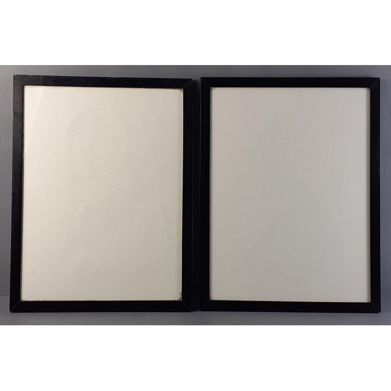 A pair of 1936 George V and Queen Mary hidden prints. The images only become apparent when held to the light. Interesting pair. Each 42cm x 32cm approx.