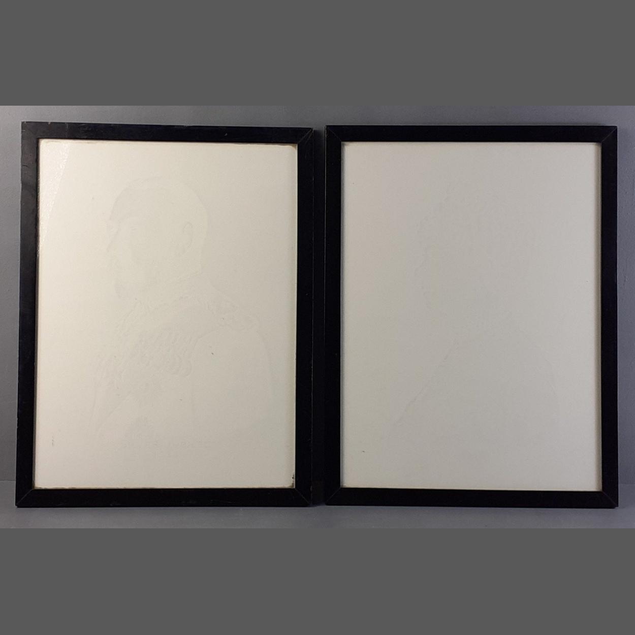 A pair of 1936 George V and Queen Mary hidden prints. The images only become apparent when held to the light. Interesting pair. Each 42cm x 32cm approx.