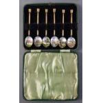 A very pretty cased set of gilt teaspoons with painted enamel possibly Highland scenes to bowls, all different. A very unusual and interesting set, nicely presented in case.