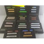 Eleven ATLAS Minitrains in boxes and a book of railway postcards.