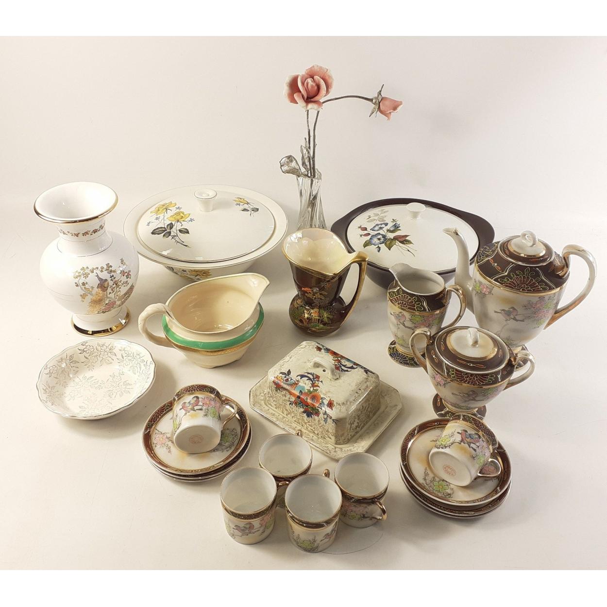 A mixed ceramics lot to include part NORITAKE style tea service, CROWN DEVON rouge style vase, casserole dishes, Greek vase etc.