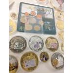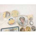 A good quantity of plated commemorative coins. Lady Diana, other Royalty issues and others of military interest. Also a 2002 Luxemburg Euro coin set.