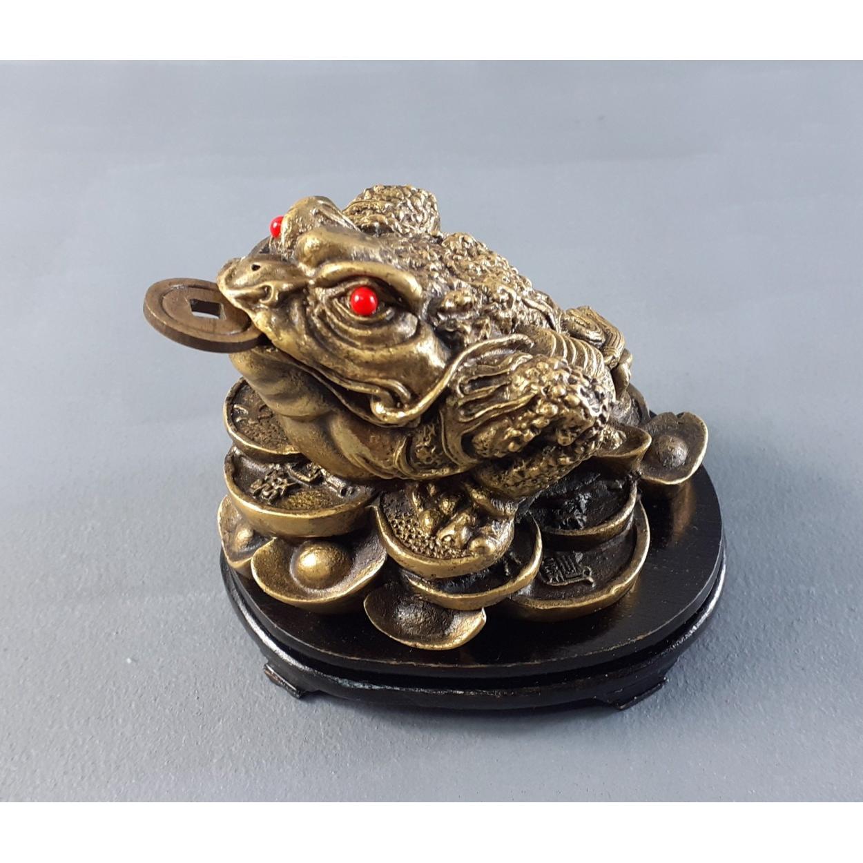 A lucky Chinese brass money frog. 9cm approx, well sculpted, an attractive wee chap.