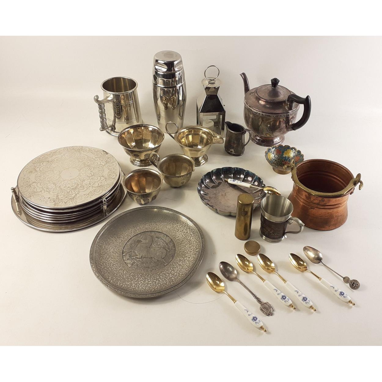 Mixed lot of silver plate and other items. Good decorative lot with cocktail shaker etc. .