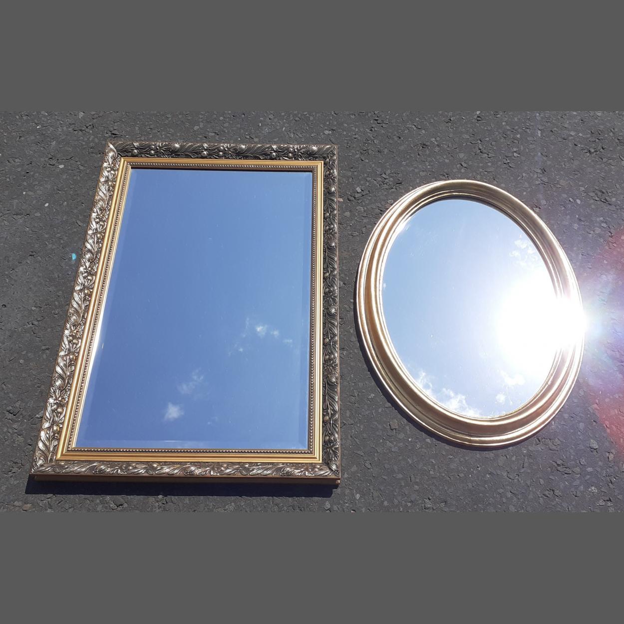 A gilt framed mirror 79cm x 53cm approx and an oval gilt mirror 62cm x 43cm.