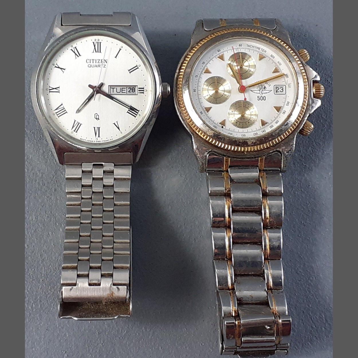 Two stylish quartz dress watches. CITIZEN and INDIANAPOLIS 500. Batteries required.