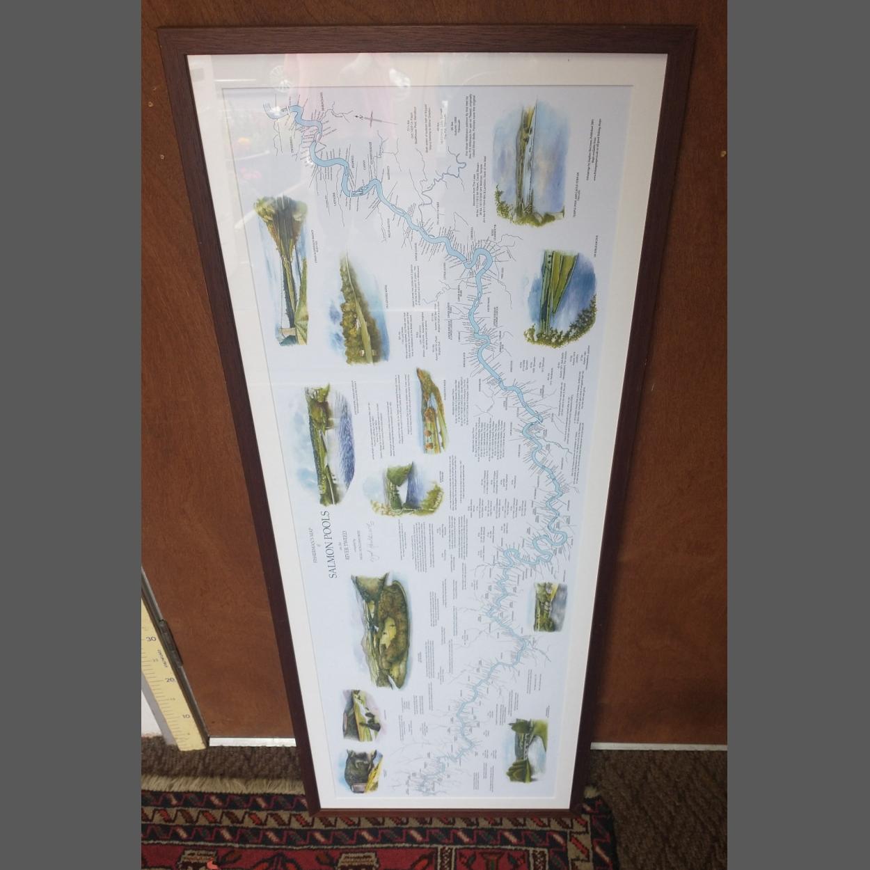 SALMON POOLS OF THE RIVER TWEED. interesting framed map of the River Tweed from source to Berwick. Frame size 107cm x 42cm approx
