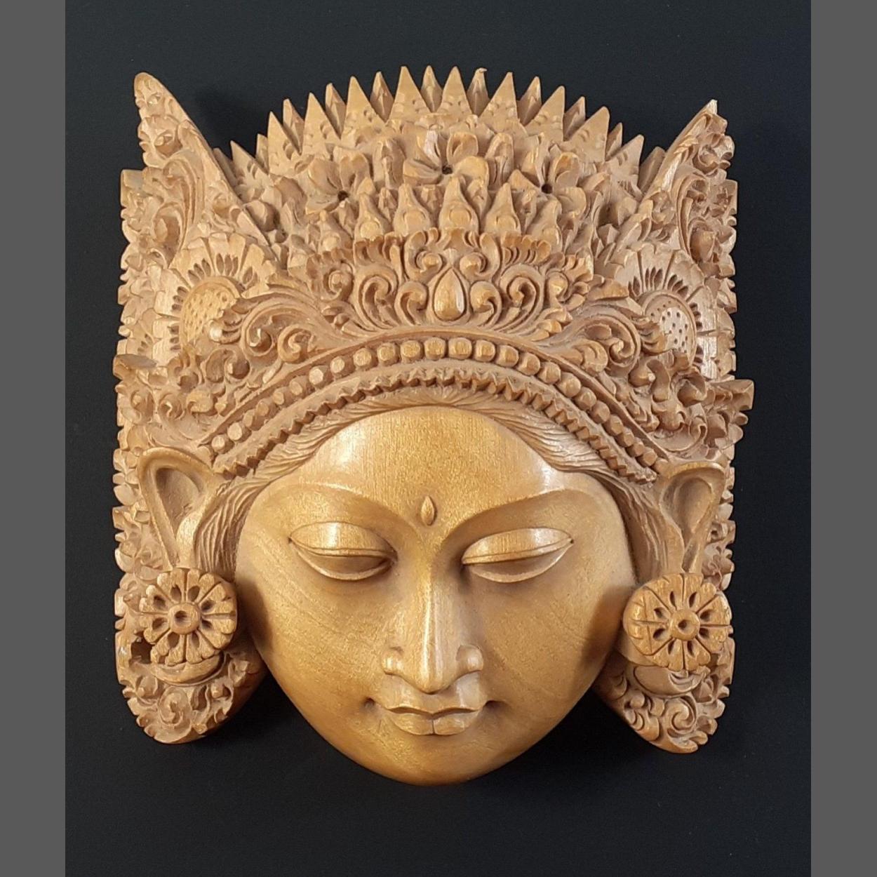 SUPER QUALITY! A detailed hand-carved wooden Asian deity measuring approx 13 x 15cm