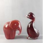 A LANGHAM glass elephant (11cm high) and a red glass duck