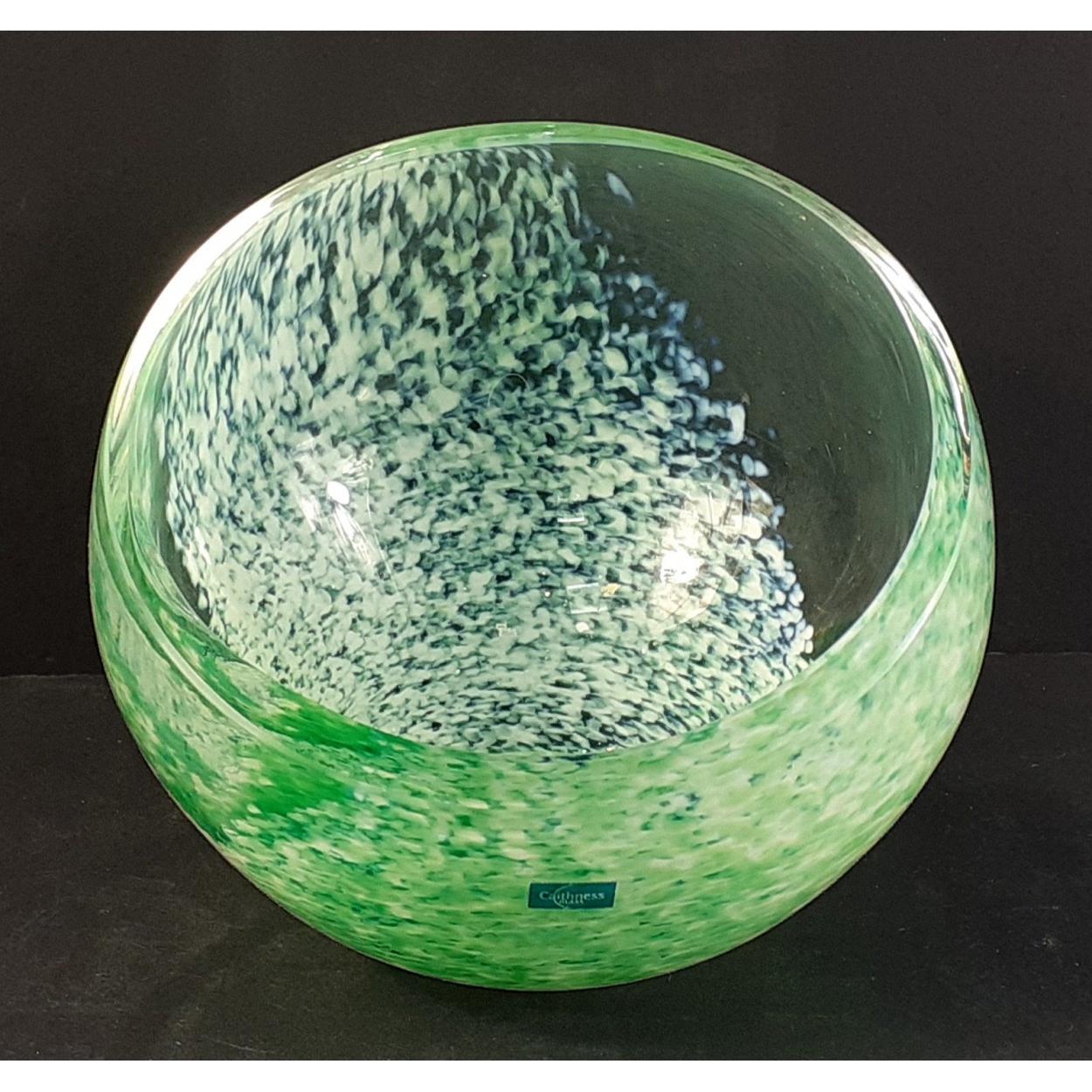 CAITHNESS glass bowl with mottled green effect. Approx 13cm across and in lovely condition.