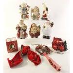 A selection of Christmas ornaments - mainly Santas in a handy storage tub