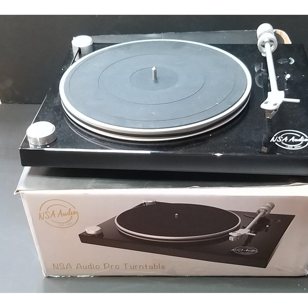 NSA AUDIO TURNTABLE Pro with USB recording etc with a mixture of cables to include a power cable etc still in its box - dimensions 44cm x 36cm approx