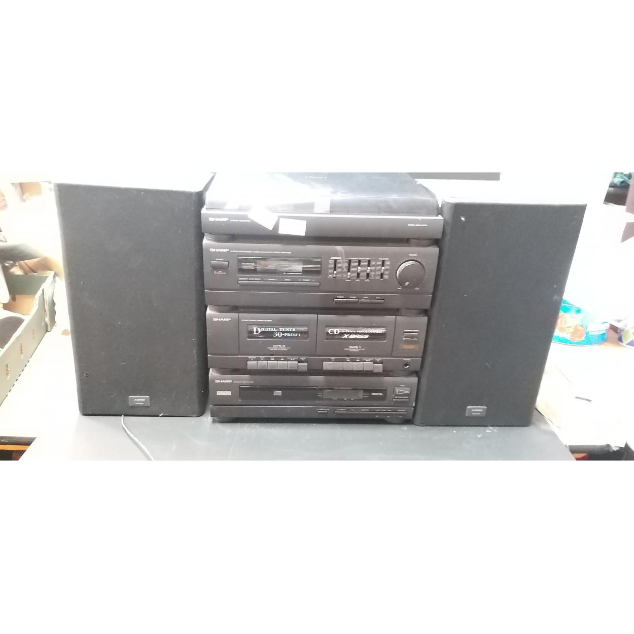 SHARP CMS 150 CDE STACKING SYSTEM electric music system with turntable - double tape deck - CD Player - tuner radio