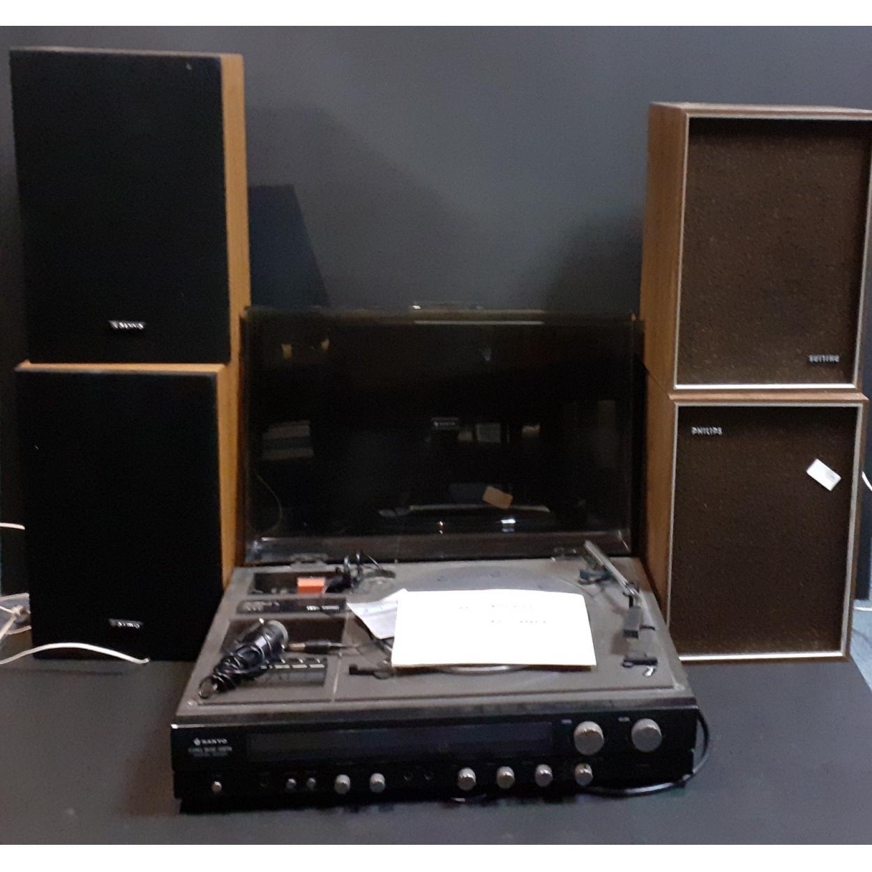 SANYO stereo G2001 music system with an additional set of Philips speakers.