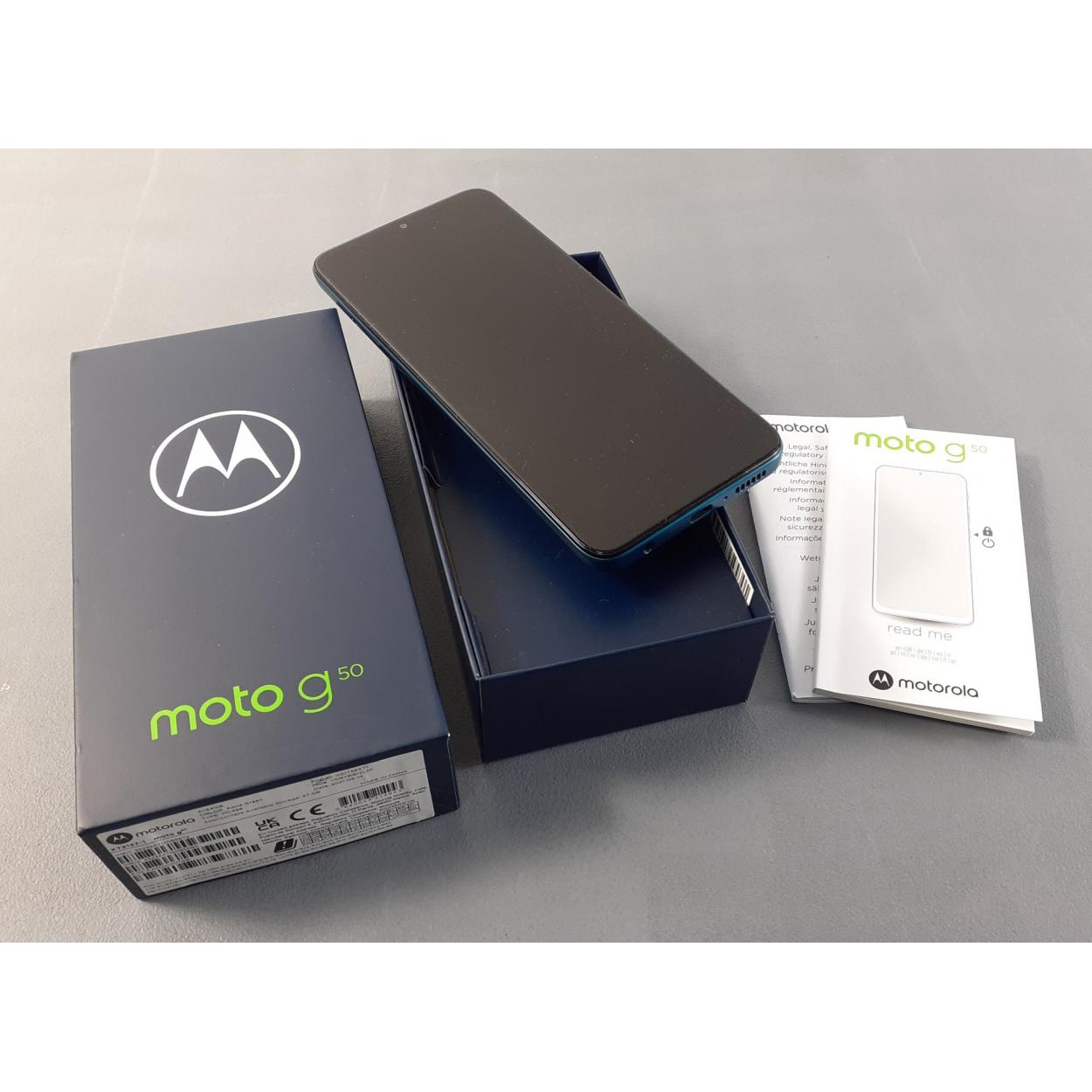 A boxed MOTOROLA G50 Mobile Phone in box. Powers up, Android. No charger.
