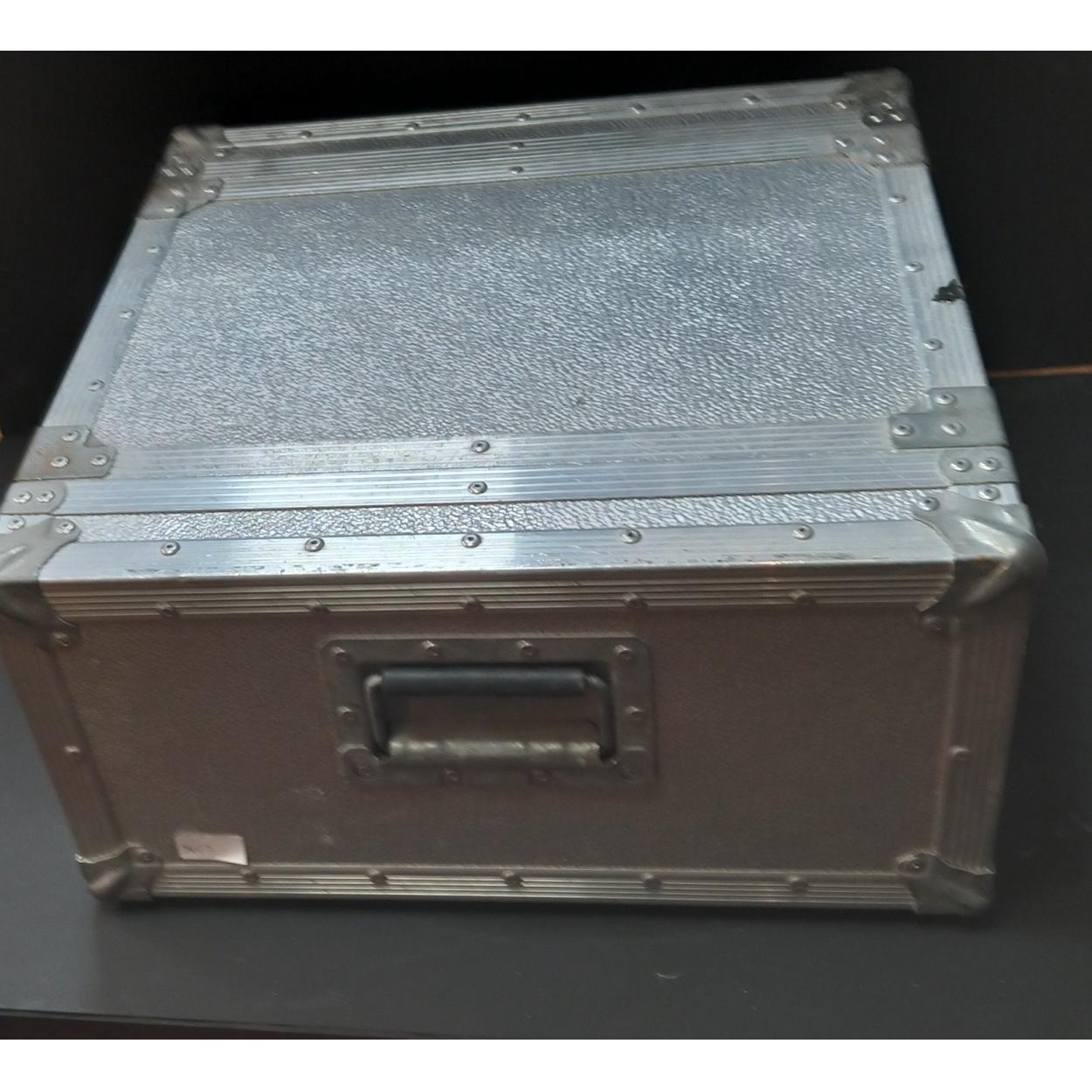 A SUBSTANTIAL ALUMINIUM carry-storage case - depth 50cm x height 50cm x 25cm depth approx
