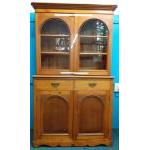 An Antique Pine Edwardian dresser with two glass doors with two shelves and storage below. 2m 6 cm tall, 1m 26cm Wide and 55cm deep. A lovely quality piece of furniture.