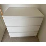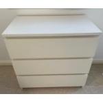An ex-IKEA set of three drawer chest of drawers finished in white - dimensions 2.25ft height x 18" depth x width 3ft approx - in nice clean condition