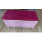 A VINTAGE bedroom LLOYD LOOM style OTTOMAN - it has a nice rich red velvet top! - 3.5ft length x 18" depth x 18" height approx - in nice clean condion ready for all those blankets and keepsakes!
